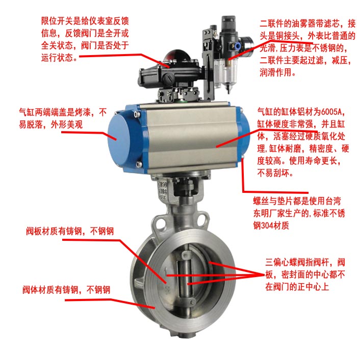 對夾式硬密封蝶閥外形美觀,其閥體、閥板、閥軸為同心結構設計。與ZMA氣動執行器相配,閥扳與閥軸采用無銷連接,介質與閥軸閥體完全隔離,維護簡便易行,100%雙向氣泡級密封,外表采用環氧樹脂噴塑處理,達到歐洲環保標準。廣泛應用于食品,環保,輕工,石油,造紙,化工,電力等行業的工業自動化系統中。